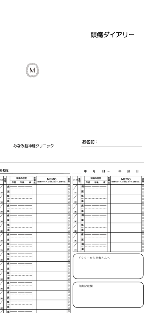 当院の「頭痛ダイアリー」をご活用ください